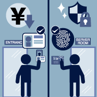 入退室管理で選ばれる認証方式には、カード認証や暗証番号、生体認証である指紋認証、顔認証、静脈認証などがあります。どれが最適かを一概に決めるのではなく、入退室管理の目的にあわせて使い分けることが重要です。カード認証は、導入コストをおさえやすく、操作や管理が簡単なため、一般エリアや広い範囲の入退室管理運用に向いています。ただし、貸し借りや紛失、盗難による不正入室のリスクがあり、セキュリティ強化が必要なエリアでは追加対策が求められます。暗証番号は持ちものが不要で端末だけで運用できる反面、共有や漏洩が起きると不正入室を招くため、定期的な番号の変更などの管理ルールの整備が必要となります。指紋認証は生体認証のひとつです。指先の指紋情報をセンサーで読み取り、あらかじめ登録したデータと照合して本人確認を行う仕組みです。読み取り方式には、光学方式、静電容量方式、超音波方式などがあり、方式によって指の状態や環境の影響の受け方が異なるのが特徴です。指紋は人ごとに異なるため、本人が操作したという根拠を作りやすく、入退室管理において、誰が入ったかを説明する必要がある場面で有効な選択肢といえます。入退室管理の記録と組み合わせることで不正打刻の抑止ができ、権限設定や入退室管理記録の確認も整理しやすくなります。顔認証は、カメラで取得した顔画像から、目・鼻・口などの特徴点を抽出して照合する仕組みです。非接触で認証でき、手袋着用や衛生管理の要件がある現場では有力な候補となります。静脈認証は、近赤外線などで皮下の静脈パターンを読み取り照合する仕組みで、本人確認強化の選択肢となります。指紋認証は生体認証のなかでも比較的導入コストをおさえやすい傾向があり、費用対効果の観点から検討されることが多い方式です。指紋認証は指先の状態に左右される傾向にあるため、手荒れや乾燥などで読み取りが安定しない場合に備え、カード認証や暗証番号認証を例外対応として同一端末で扱える設計だと入退室管理の運用が止まらず安心です。重要なのは、入退室管理を全扉同じ強度にしないことです。人の出入りの多い一般エリアはカード認証で運用をシンプルにし、セキュリティ強化が必要なエリアでは、生体認証である指紋認証を中心に本人確認を強化し、必要に応じて二重認証にするのが有効です。この使い分けが、入退室管理の効率化と安全性の両立につながります。