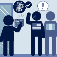 ある介護施設では、職員の勤怠管理にICカードを採用していましたが、ICカードの持ち忘れが頻繁に発生していました。とくに、人数が減る深夜帯にICカードを忘れた職員へのフォローが業務を圧迫していたため、課題と認識していました。ICカードに代わる勤怠管理方法として、持ち忘れが起きない指紋認証機能が搭載されたKJ-3500Hを職員通用口に取り付けました。KJ-3500Hに登録した指があれば、勤怠管理ができるため、職員のフォローが不要になり業務が改善しています。指をケガした際は、ICカードによる勤怠管理も可能です。