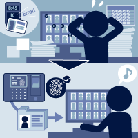 指紋認証リーダーKJ-3300は、高性能な指紋認証技術により入退室管理の課題であった不正打刻や打刻漏れを抑止し、担当者の負担軽減を実現します。また分割購入プランを活用することで初期費用をおさえた導入が可能です。